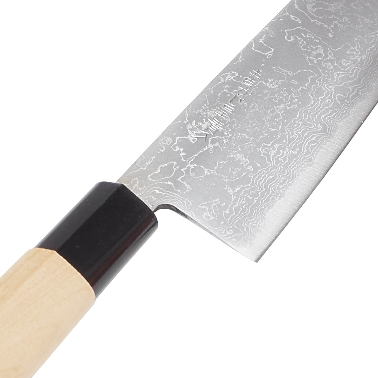 全体に広がるダマスカス模様が非常に美しい牛刀包丁。