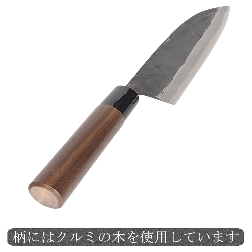 表面の仕上げは、土佐打ち刃物の特徴の一つでもある、黒い部分を残した「黒打(くろうち)」仕上げ。