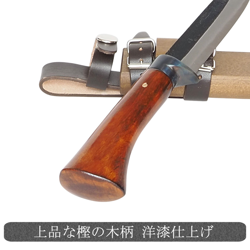 表面の仕上げは、土佐打ち刃物の特徴の一つでもある、黒い部分を残した「黒打(くろうち)」仕上げ。
