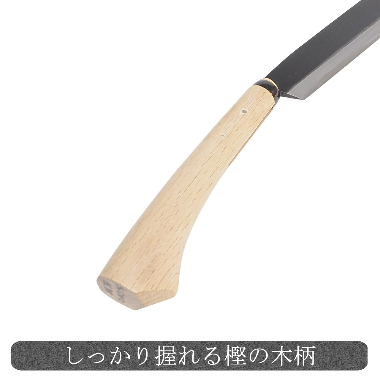 刃の鋼は、安来鋼(やすきはがね)の高級鋼「青二鋼」を使用。 長切れし、高い硬度と粘り強さを兼ね備えた鋼で、一度刃を付けてしまえば、長い間切れ味が持続するという特徴があります。