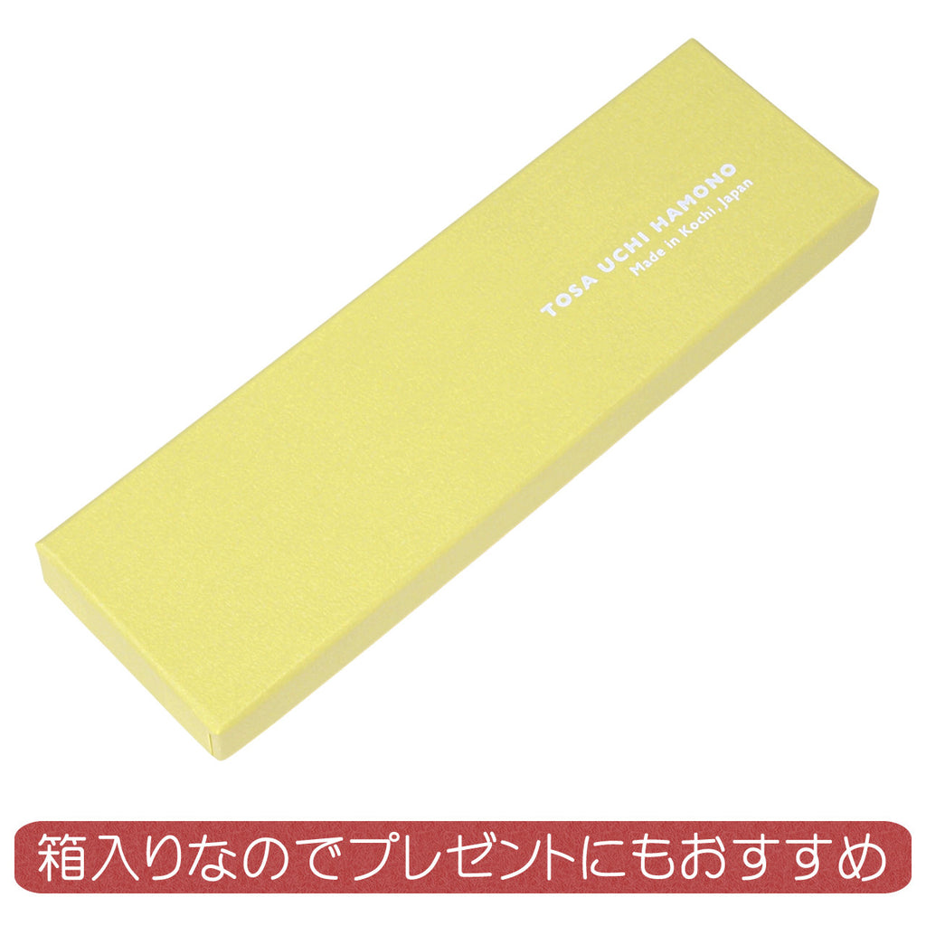 ナイフ自体には土佐刃物である印はあえて入れず、箱にさりげなく「TOSA UCHI HAMONO Made in Kochi,Japan」と入れました。