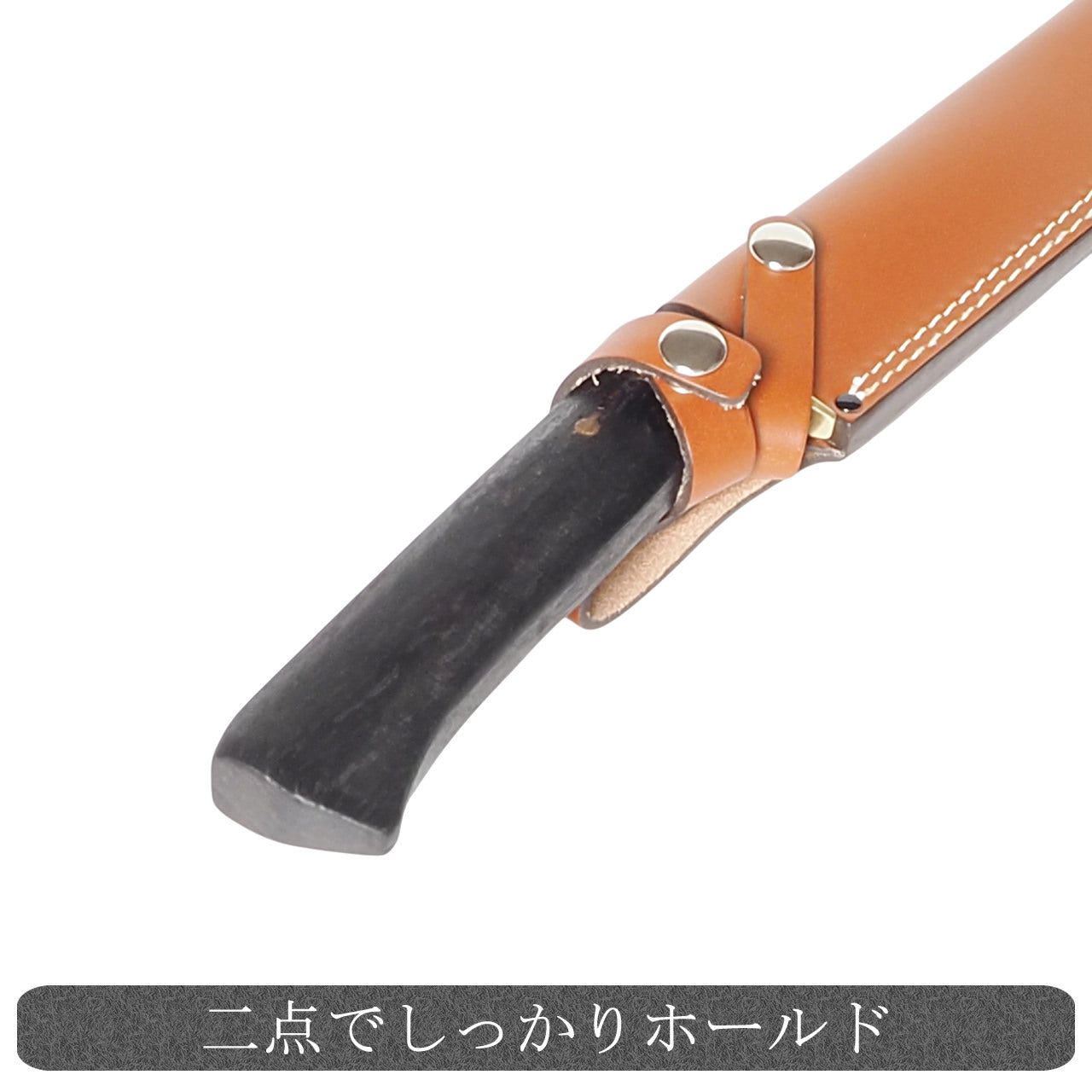 鉈の柄を留める部分が2箇所あり、安全に配慮されたケースだと思います。